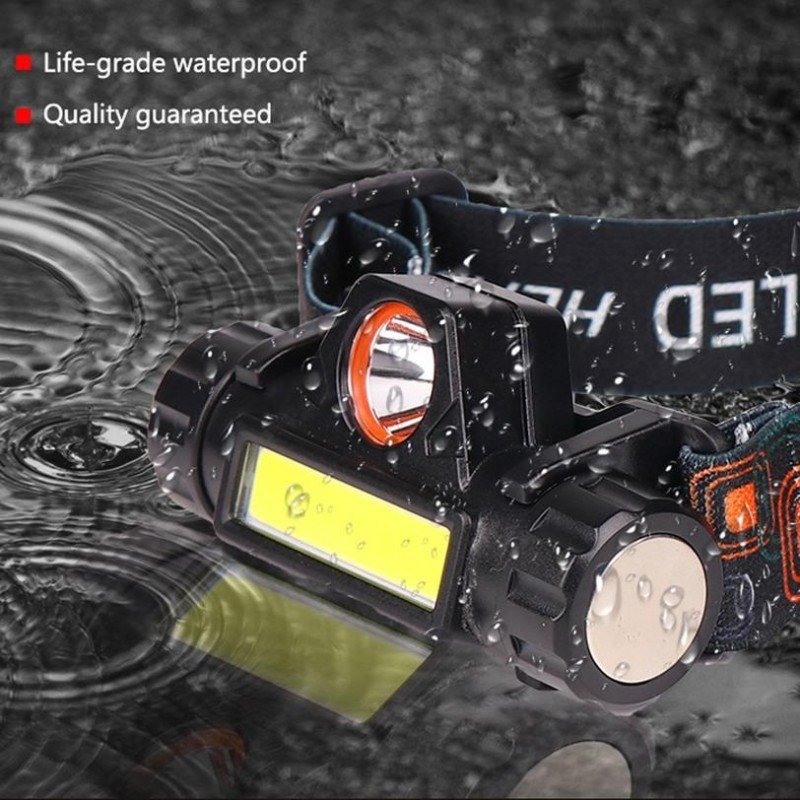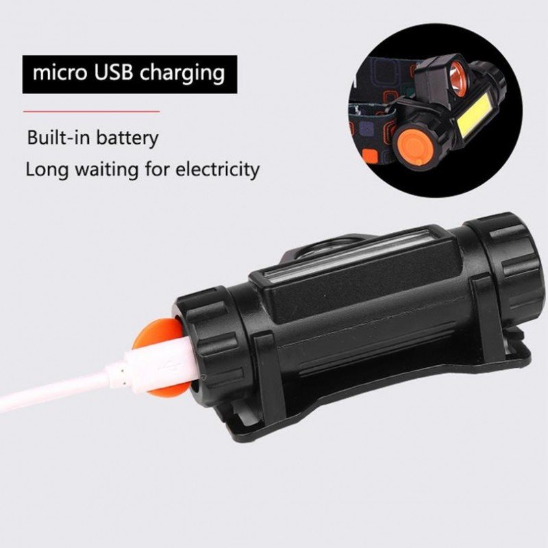 – La lampe frontale dispose de 2 modes d’éclairage, y compris la lumière lumineuse T6 et la lumière lumineuse COB. Et vous pouvez régler la luminosité de la lumière en appuyant longuement sur l’interrupteur.